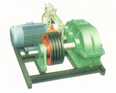 多繩槽曳引機的卷筒為一多平行繩槽的滾輪,用于和滑輪組的組合使用,從而實現牽引。多繩槽曳引機的拉力相對比較大。但要配大功率的電動機。