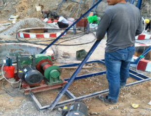 高速公路的工期一般都特別長,要途經多個城市或省,在修建時遇到地形復雜的路段便要進行高架橋的建設,由于落差的原因,有些高架橋便會非常高,這就需要很高的橋墩,為保證橋墩牢固,就需要插入地下,進行打井作業。打井過程中,井底的泥土與碎石需要吊運上來,這時工人們通常使用卷揚機進行作業。
